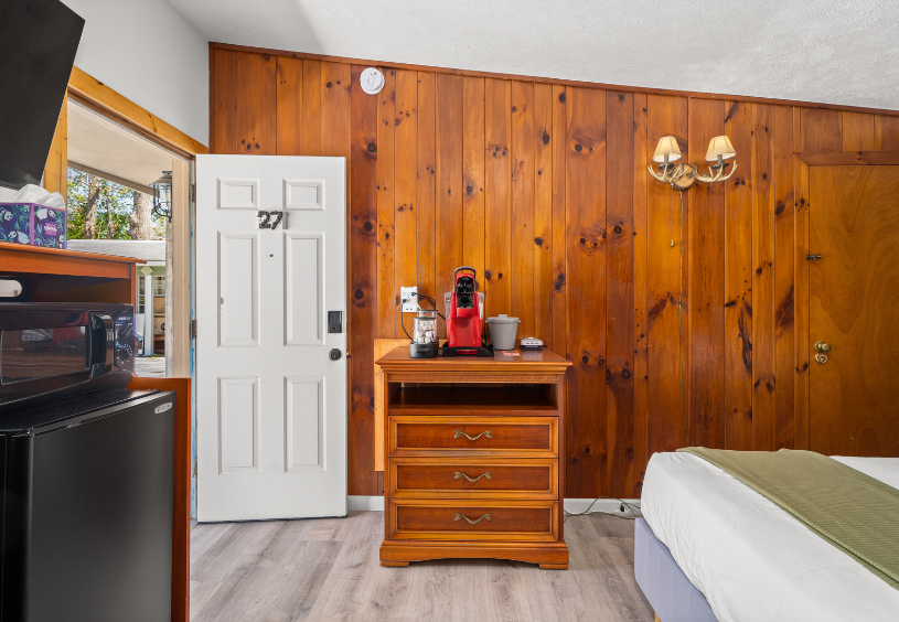 After a full day of hiking, sight-seeing, and trying local wines, you’ll welcome the quiet, rustic setting of your queen room. Make a private room at the cozy, quiet Cedarwood Inn your main headquarters. You’ll love the rustic décor combined with warm, inviting homey touches. Enjoy a restful and peaceful stay close to golfing, orchards, wineries, Flat Rock Playhouse, and many more attractions. Take advantage of fast Wi-Fi, a Keurig coffee machine, and a smart TV with streaming services and live TV.